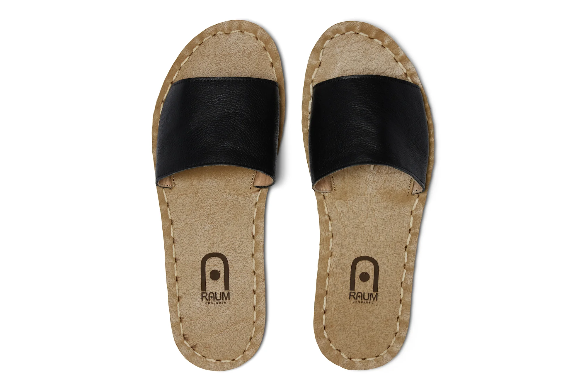 Minimalist design slide sandal that molds to your feet over time. Uniquely hand-sewn construction with grounding copper plug through the outsole.